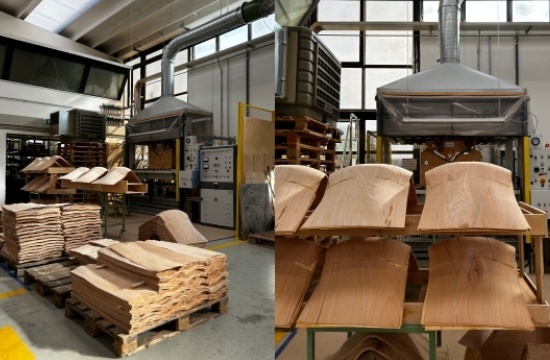 Con il legno massello FSC realizziamo i nostri tavoli e i telai delle sedie. Produciamo il multistrato di faggio in classe E1, a bassa emissione di formaldeide e, ove necessario, eseguiamo il rivestimento esterno con le essenze più pregiate, come rovere e frassino. La verniciatura, il tocco finale, la effettuiamo su richiesta anche con tinte all'acqua per legno.
